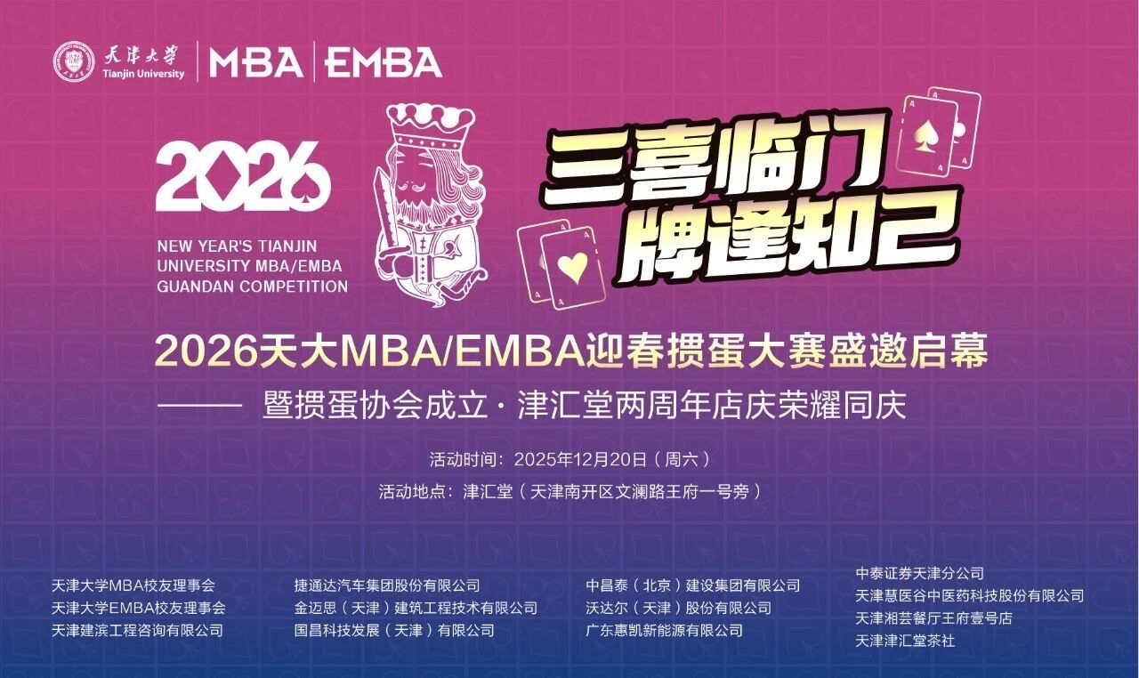 此次掼蛋友谊赛的成功举办,不仅让天津大学MBA/EMBA的学子们感受到了掼蛋运动的独特魅力,更在切磋交流中结识了一群志同道合的挚友。大家纷纷表示,这样的活动既丰富了课余生活,又为未来的合作发展埋下了伏笔。