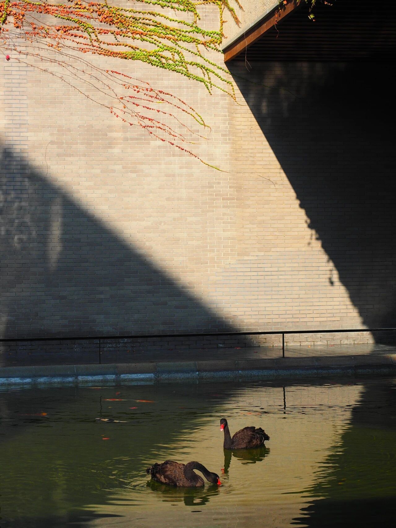 楼外的庭院修葺一新,澄心池水更加清澈,池中水榭扩大,小桥变宽。满池锦鲤回来了,两只黑天鹅也回来了。更值得一提的是,新增几尊当代重要艺术家的雕塑,为这处人文绿地带来了更多艺术气息。
