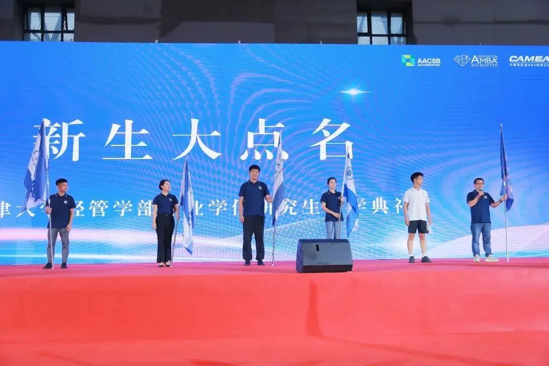 新生大点名环节将整场典礼推向高潮,来自各项目的新生代表上台,带领大家喊出了项目口号。他们来自各行各业,而如今他们拥有一个共同的新身份——天大经管2023级新生,开启了人生新的征程。