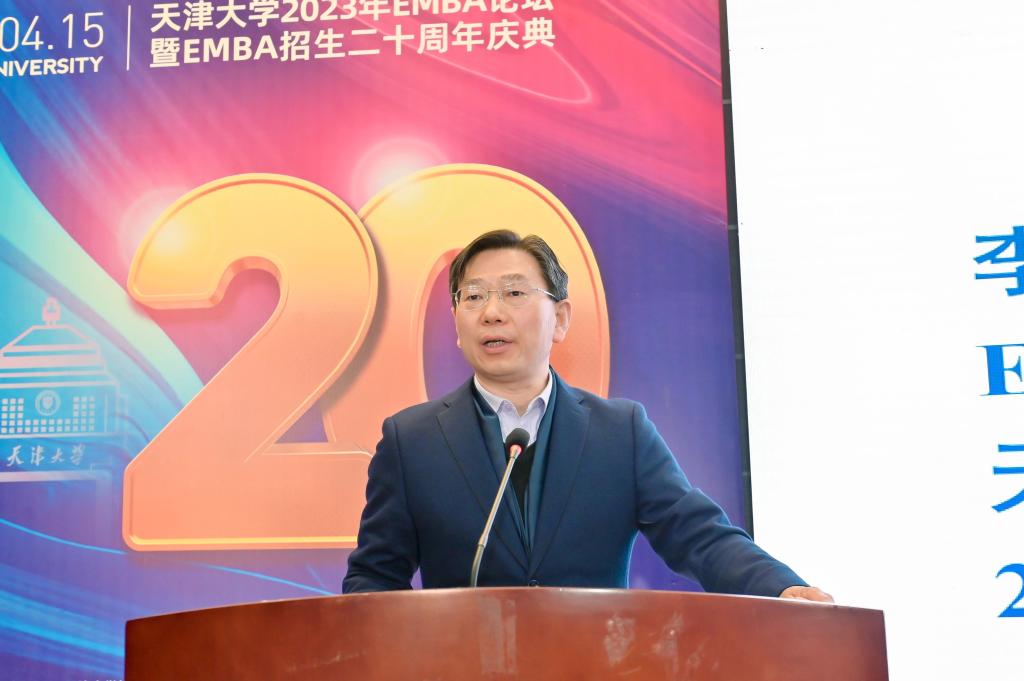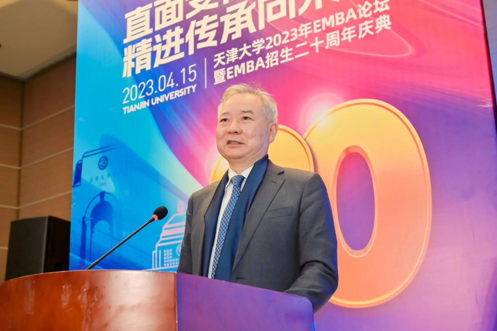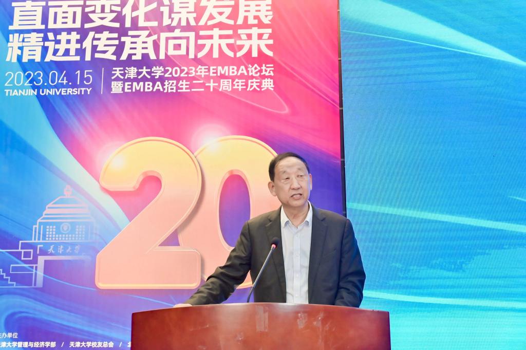 天津大学管理与经济学部党委书记毛照昉首先代表学部对莅临本次活动的各位领导、专家学者、校友和同学们表示最热烈的欢迎和衷心的感谢。他提到天津大学管理与经济学部自成立以来,在学校领导支持以及学部全体教职员工和广大校友的共同努力下取得了长足发展。作为经管学部特色专业学位教育项目之一,天大EMBA项目经过20年的精心打造,在全国范围内赢得了社会的高度认可,为国家和社会发展持续输送高水平业界精英和商界领袖,为推动社会经济创新发展贡献智慧和力量。希望校友们、同学们能够更好地迎接新时代的机遇与挑战,运用所学理论知识服务于中国式现代化发展,推动国家战略、社会经济和产业进步,为人民幸福和社会福祉作出突出贡献。
