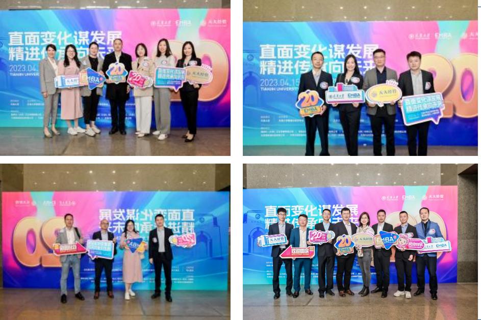 最后在2021级EMBA同学顾晨君的主持下,马鑫、李春堂、张杨、郭越超、毛洪成、许赫赫、刘志刚、葛智海等EMBA历届校友代表和同学们以“校友情,谈变化,话未来:我们这20年,与未来20年”为主题展开共话,他们积极分享在天大求学的经历和感受,他们一致认为在天大的学习收获颇丰,在思维方式和认知上有了很大的提升,深刻领悟到“一入天大门,一生天大人”的精神内核并真诚祝愿所有校友“举天大之名,成天大之事”。