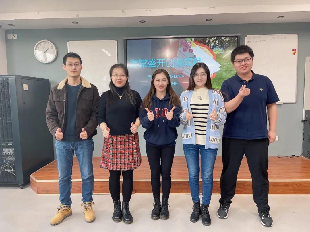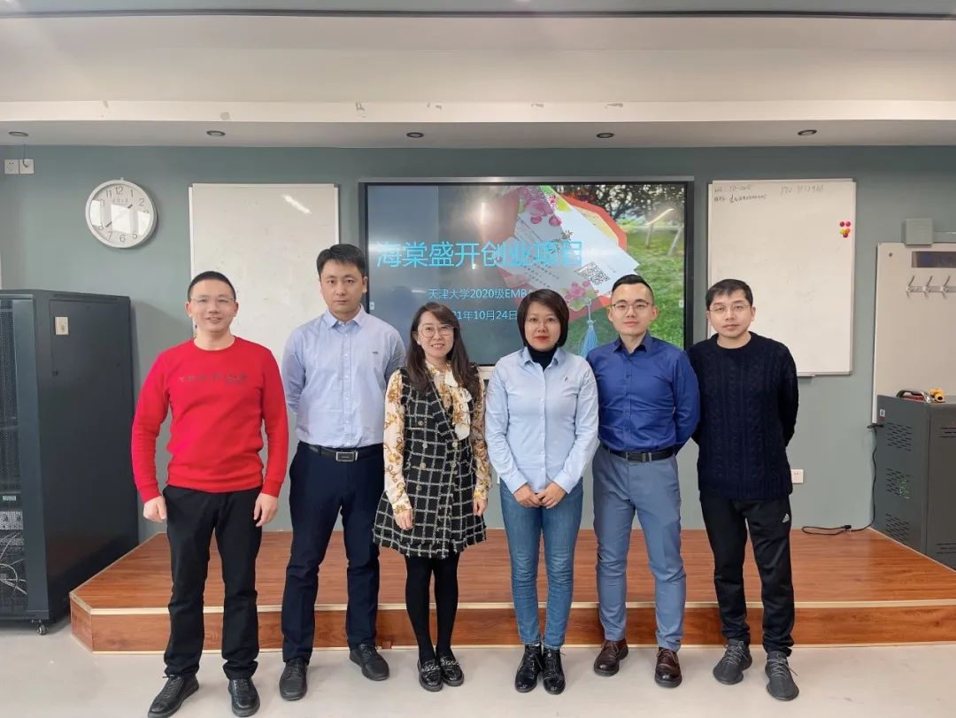 10月24日上午,在天津大学卫津路校区第19教学楼举行了一次“朱熹会”《2020级EMBA海棠盛开项目》分享会活动。此次活动线上、线下同步进行,EMBA和MBA 的同学共计70余人参加此次活动,本次分享由2020级EMBA同学共同创业项目为主题,并邀请天津大学EMBA项目主任赵道致教授、天津大学管理与经济学部白彦壮副教授和天津大学校友、天津科技金融中心主任、北洋海棠基金发起合伙人、总经理何勇军博士为点评嘉宾。