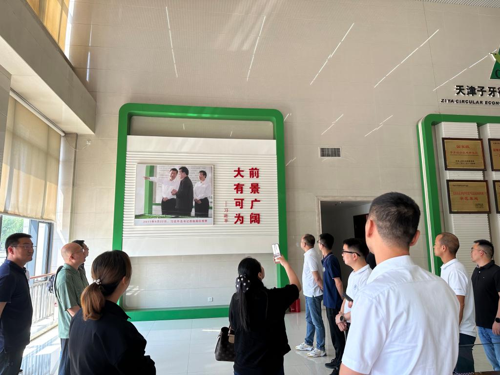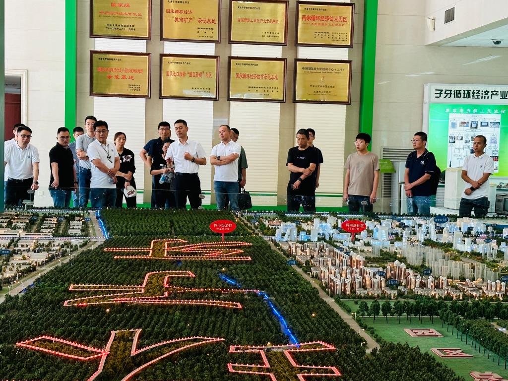 走进展厅映入我们眼帘的是习近平总书记在2011年9月莅临园区调研时指出“城市矿山,前景广阔,大有可为”的照片。子牙经济产业园主导产业以循环经济产业为基础,按照补链延链强链的产业发展导向,做强再生资源综合利用产业,做大新能源汽车和新材料产业,做优平台经济产业,拓展先进制造与再制造产业,培育装备制造与智能制造产业,逐步形成产业体系完整、链条结构衔接紧密的园区现代产业体系,通过参观让我们沉浸式的体验了循环经济产业的前景广阔,大有可有。