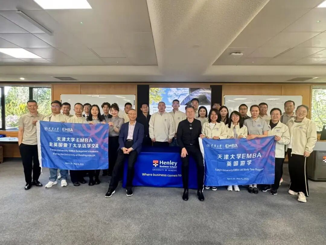 为推进天津大学管理与经济学部国际化认证的开展,促进国际交流,提升EMBA学生国际视野,天津大学EMBA项目于2025年4月26日至5月4日,组织开展了为期九天的英国访学活动。此次活动由天津大学管理与经济学部教授、EMBA项目主任窦润亮与天津大学管理与经济学部会计与财务管理系讲师姚守宇带队,二十多位来自天津大学EMBA的商界精英齐聚雷丁大学亨利商学院,共同参与“深度领导力培训项目”。通过系统化的课程设置与多维度的实践交流,学员不仅在数字化转型、战略领导力、创新创业等领域获得了全面提升,还获得了由亨利商学院颁发的短期学习结业证书、华为大师课认证证书,并正式加入亨利Henley全球校友网络,为未来的职业发展与国际交流打下了坚实基础。